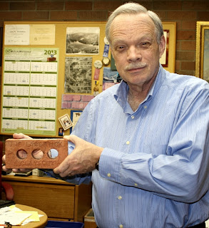 | Houlahan holds one of the last bricks made in Clay City. |